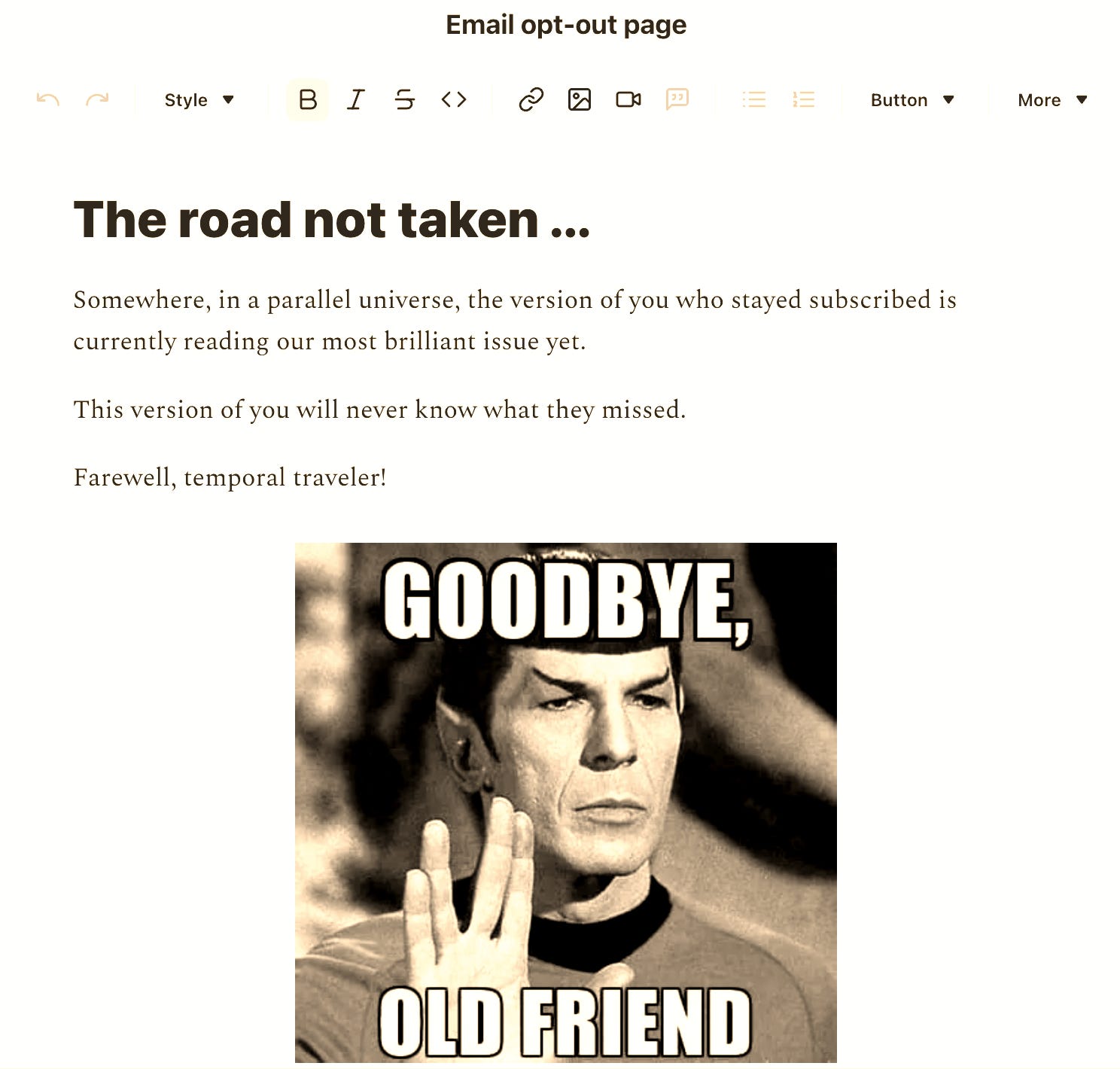They highlighted the importance of attention to detail, even in the smallest corners. For instance, the email opt-out page: they made sure that even if someone chooses to leave my Substack — even if I’m not providing value at that moment — the experience still leaves them with a smile.